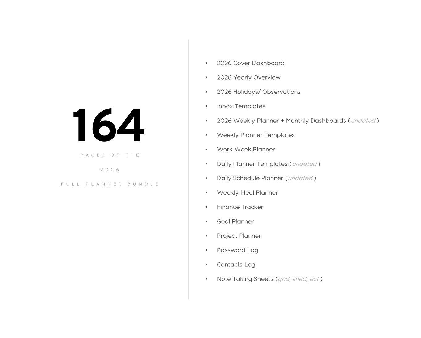 - 2026 Cover Page: A clean and minimal cover to set the tone for your planner. Perfect for a minimalize theme, or aesthetic.